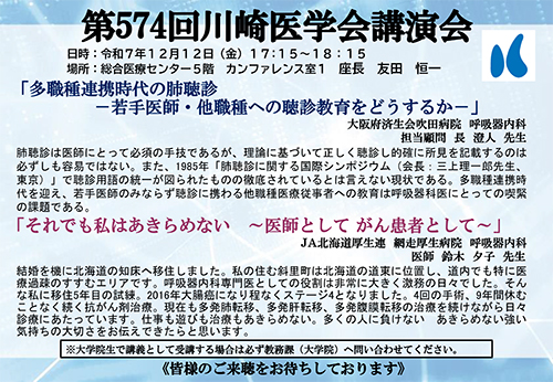 なお本会の性質上、講演動画の配信は川崎医学会会員に限りますことご了承ください。